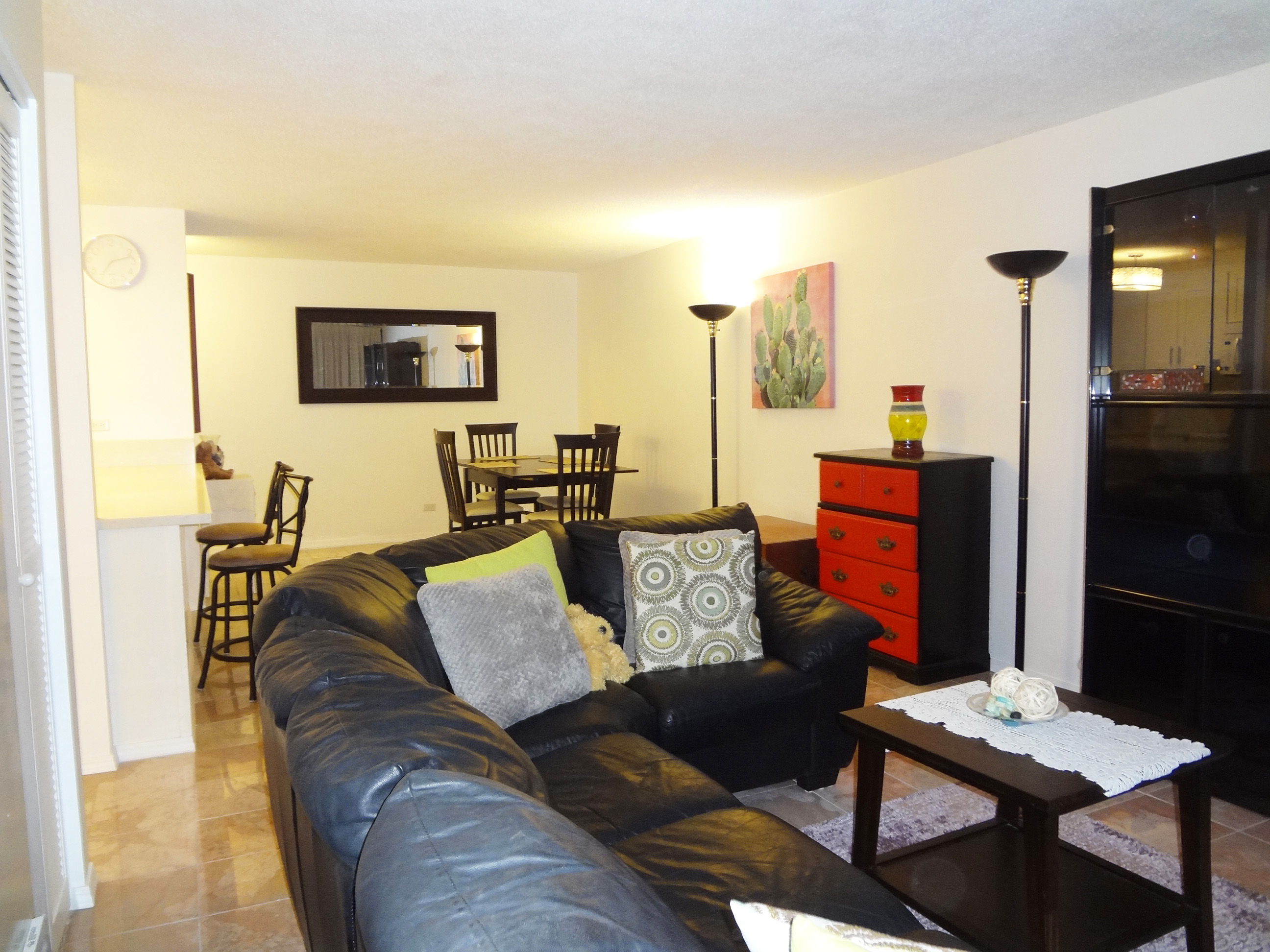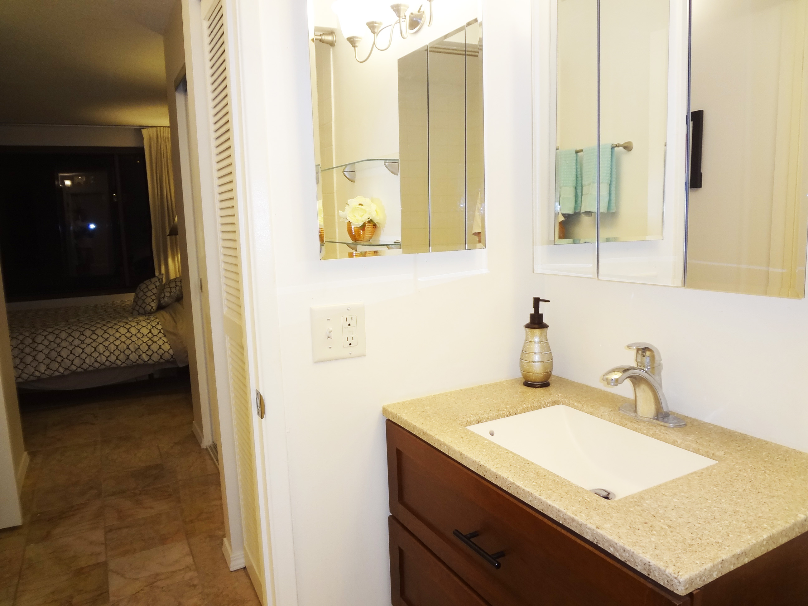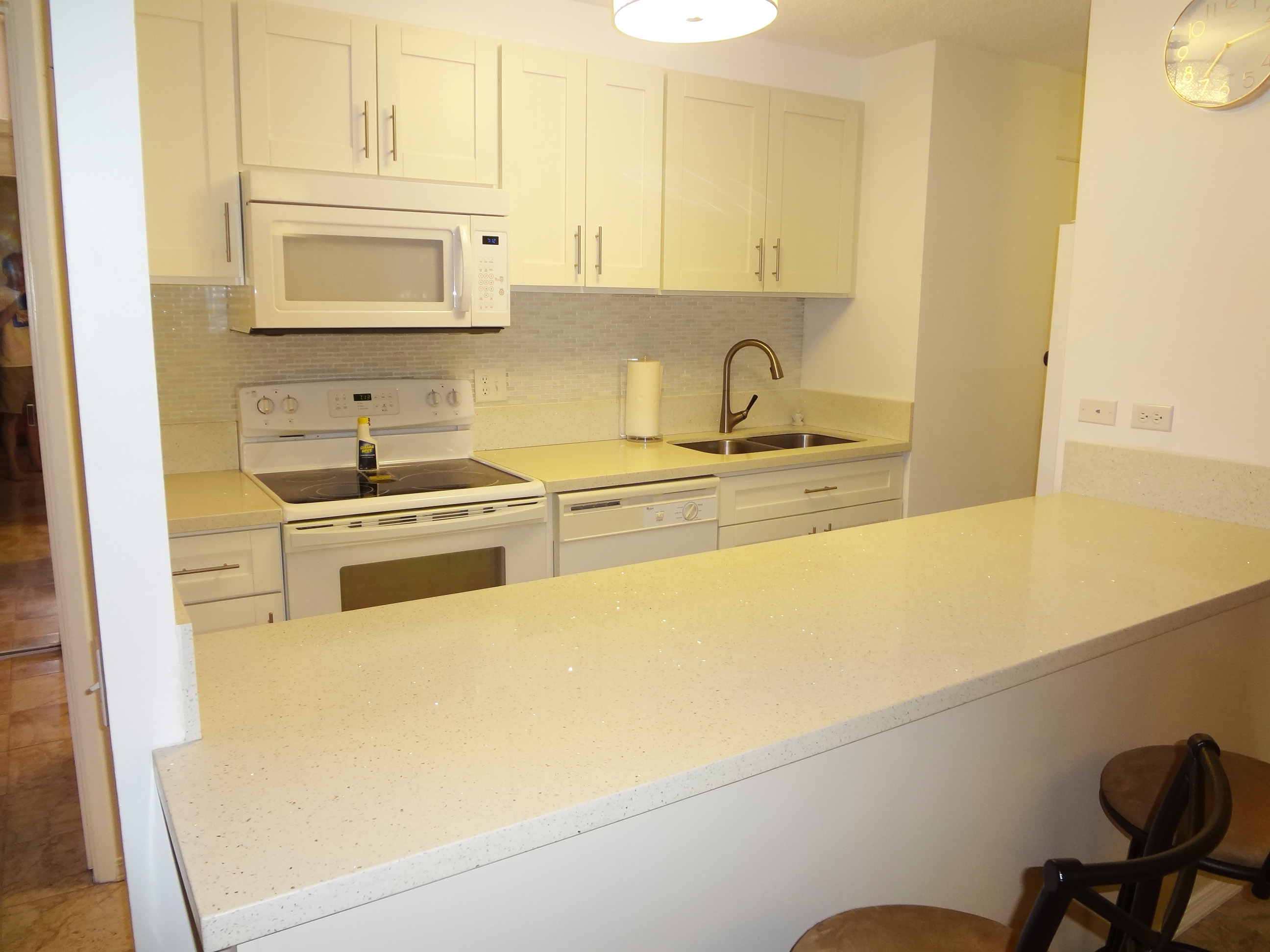 and fully furnished, the Star Fruit 1 bedroom is completely redone with marble floors, quartz counters and an enclosed lanai for more room. 2 peeks at the ocean also!