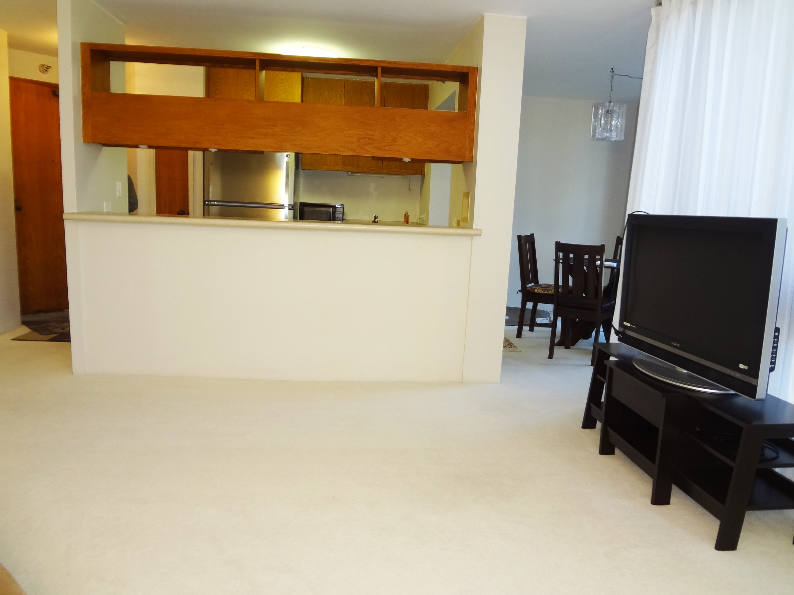 Above is the Passion Fruit one bedroom living room. Pass through kitchen, separate dining area. |